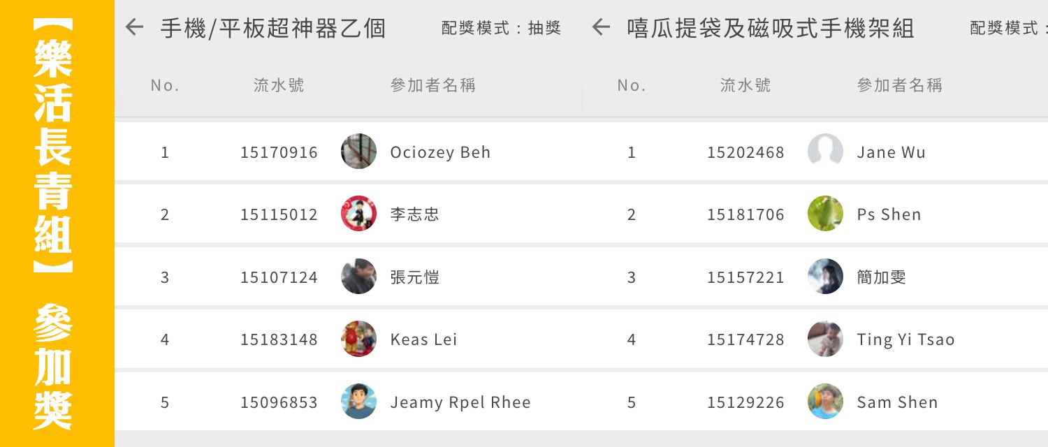 參加本組投票活動的投票者,有機會獲得以下參加獎